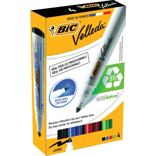 Hold oversikt over dagens leksjon eller presenter viktige ideer i møter med Bic Velleda-whiteboardpenn laget på 51% gjennvunnet materiale.