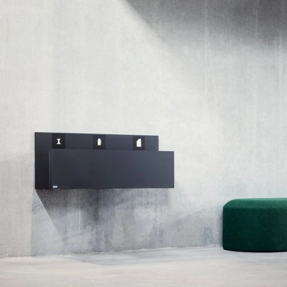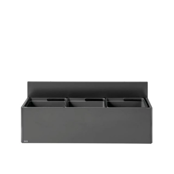 Elegant vegghengt avfallssystem med 3-6 rom i stilig og praktisk design. Dette er et fleksibelt avfallssystem fra Bica som sørger for enkel og brukervennlig avfallssortering på arbeidsplassen. Avfallssystemet leveres med 3 stk. 20 liters innerbeholdere med håndtak for enkel håndtering. Innerbeholdere i andre størrelser kan kjøpes ved behov. Det vil derfor være mulig å sortere i inntil 6 enheter. Denne Bica-modellen passer godt for en enkel avfallssortering på skoler og utdanningsinstitusjoner. FUNKSJONER: Avfallssystemet festes enkelt til veggen ved hjelp av den skjulte veggskinnen bak. Avfallssystemet er utstyrt med en høy plate bak for å beskytte veggen mot smuss, som lett kan tørkes av. Avfallssystemet leveres med innerbeholdere med håndtak for enkel håndtering ved tømming. Skruer etc. for montering ikke inkludert. DESIGN: For å oppnå høy hygiene og minimalt vedlikehold er avfallssystemet laget av pulverlakkert stål. Det stilige designet og de rene linjene gjør det til en avfallsbeholder som naturlig kan integreres i interiøret. Vegghengt Farge: Antrasitt Størrelse (H x B x D): 45x114x29 cm Minimum posestr: 70x55 cm