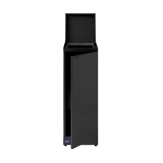 Elegant og praktisk avfallsbeholder i stilig design. Dette er en fleksibel avfallsbeholder fra Bica som sørger for enkel og brukervennlig avfallssortering på arbeidsplassen. Avfallsbeholderen er utformet med praktisk lokk med håndtak. Hensikten med lokket er å minimere luktplager og hindre bananfluer ved sortering av matavfall. En virkelig smart løsning hvis posen ikke tømmes ofte. Kombiner og tilpass etter behov med andre avfallsbeholdere fra Bica S30-serien. FUNKSJONER Avfallsbeholderen er utstyrt med frontdører med soft close for ergonomisk korrekt tømming uten tunge løft. Avfallsbeholderen er utstyrt med en integrert og sterk poseholder slik at posen holder seg på plass. Lokket skjuler også posen, slik at avfallsbeholderen holder et stilig design. Avfallsbeholderen er utstyrt med justerbare føtter, som er skjult bak sokkelen. DESIGN Alle modellene i Bica Series S30 kan tilpasses og kombineres etter behov ved hjelp av kraftige magneter. For å oppnå høy hygiene og minimalt vedlikehold er avfallsbeholderen laget av pulverlakkert stål. Det stilige designet og de rene linjene gjør det til en avfallsbeholder som naturlig kan integreres i interiøret. Innendørs bruk Serie: S30 Farge: Antrasitt Størrelse (H x B x D): 84,5x30x30 cm Minimum posestr: 65x90 cm