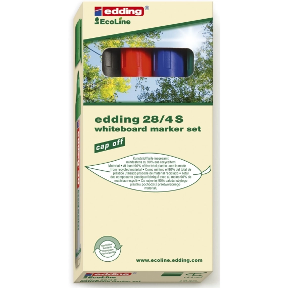 Edding 28 EcoLine-Whiteboardpenn skriver på nesten alle ikke-porøse materialer, og bruker plast laget av 90 % resirkulerte materialer.