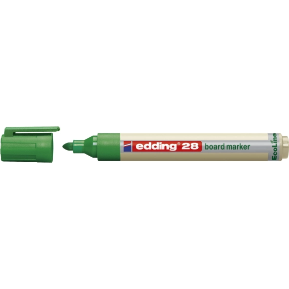 Edding 28 EcoLine-Whiteboardpenn skriver på nesten alle ikke-porøse materialer, og bruker plast laget av 90 % resirkulerte materialer.