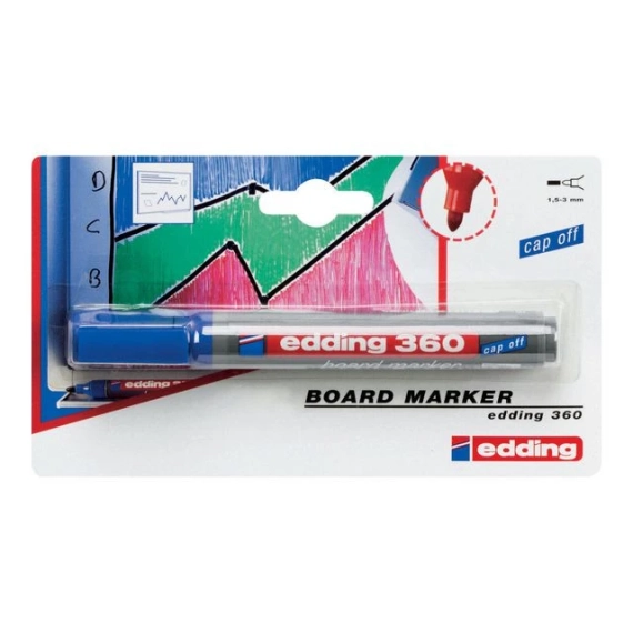 Edding 360-Whiteboardpenn bruker pigmentblekk med svak lukt og skriver jevnt på alle tusjtavler og andre ikke-porøse flater.