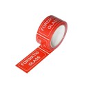 Tape med rød/hvit tekst: 'FORSIKTIG GLASS'. Emballasjetape for merking av forsendelser. - Materiale: PP med akryllim. - Mål (BxL): 50mmx 66m.