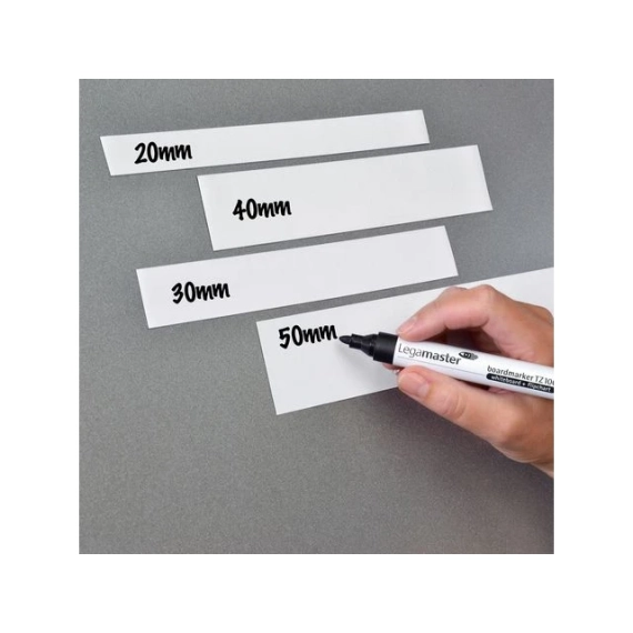 Legamaster® magnetisk merketape gjør det mulig å merke gjenstander ved hjelp av en tusj på forsiden med en magnetstripe på baksiden. Gjør raskt gjenstander til magneter med Legamaster® magnetisk merketeip. Med en permanent magnet man kan skrive på, fester denne teipen et bredt utvalg av gjenstander på alle stålbaserte flater. Enten du ønsker å merke ting på jobben eller hjemme, er denne magnetiske teipen den perfekte løsningen. Den er så tynn at du kan klippe av den nøyaktige lengden du trenger til prosjektene dine, fra den praktiske rullen. - Magnetisk teiprull - Merk hyller eller arkivskap raskt - Praktisk rull sørger for rask dispensering - Permanent magnet som fester seg til alle stålbaserte flater - Teiptykkelse: 0,6 mm - Rull: 30 mm x 3 m - Farge: Hvit