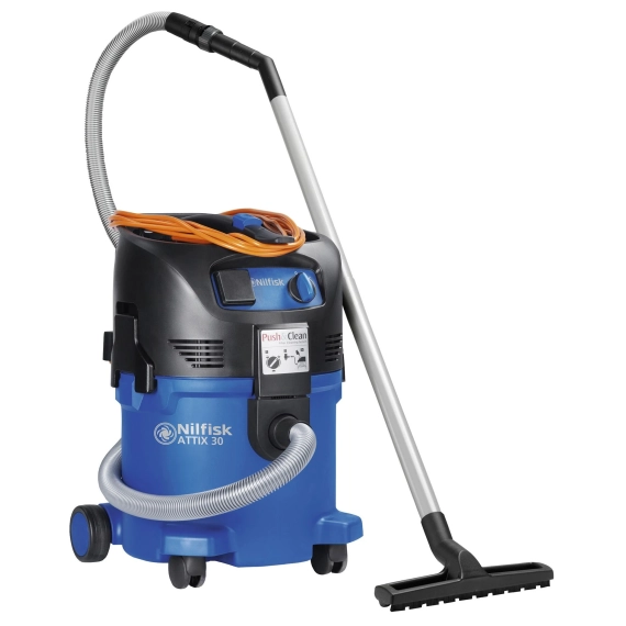 ATTIX 30 er en støysvak, kompakt og mobil våt-/tørrsuger med stor sugeevne. De mange variantene i serien samt strømuttak med start/stopp-funksjon gjør den til det perfekte valg for håndverkerecc med varierende arbeidsplasser.