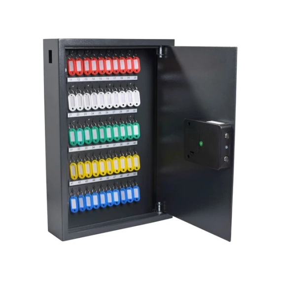 Effektiv og trygg nøkkeloppbevaring med PAVO nøkkelskap for 50 nøkler. PAVO nøkkelskap gir deg sikker og ryddig oppbevaring for opptil 50 nøkler. Laget av slitesterkt metall og utstyrt med en elektronisk lås, er dette nøkkelskapet ideelt for kontorer, verksteder og garasjer. Hold nøklene dine trygge og lett tilgjengelige! - Kapasitet: 50 nøkler - Elektronisk lås for økt sikkerhet - Slitesterk metallkonstruksjon - Mål: 550x100x400mm - Farge: Mørkegrå