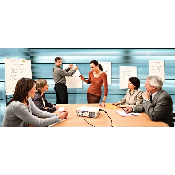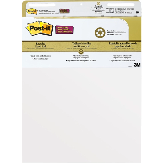 Disse Post-it®-staffeliblokkene er ideelle når du skal ta notater under møter, til presentasjoner eller til idémyldring. Kan henges på staffelier ved hjelp av universalsporet. Opplæringsøkter blir en lek siden hvert ark kan rives av, takket være det sterke limet på baksiden av arkene kan de også festes på vegger og lignende. Arkene er store og kan flyttes, slik at du enkelt kan feste, fjerne og plassere dem på nytt uten at de etterlater seg limrester på overflatene. Blokken har også et praktisk håndtak som gjør den enkel å ta med seg. Hver blokk består av 30 ark