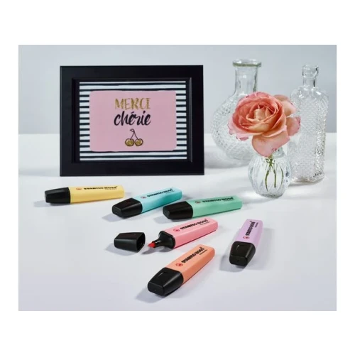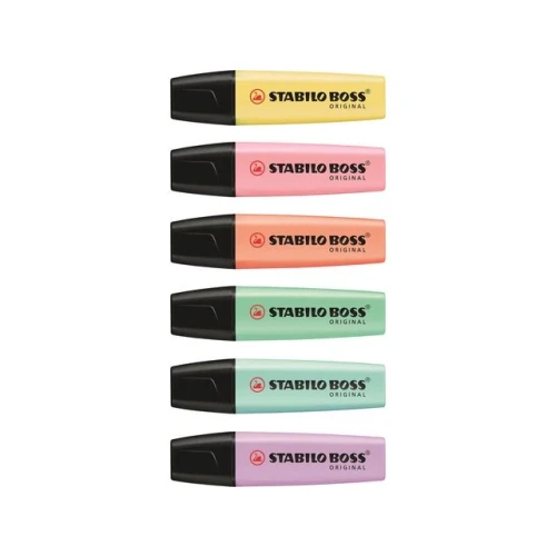 Merk tekst og fremhev viktig informasjon med STABILO® BOSS® Original-markeringspennen i pastellfarger med Anti-Dry-Out-teknologi. Den nye versjonen har samme utseende og funksjoner som den originale STABILO® BOSS®-markeringspennen, men har i tillegg blekk med Anti-Dry-Out-teknologi. Denne teknologien gjør at pennen kan ligge uten hette i fire timer uten å tørke ut. Disse merkepennene er egnet til bruk på nesten alle typer papir, har en skråskåret spiss og kan brukes til en rekke formål, som skriving, understreking eller merking. STABILO®-markeringspennene i pastellfarger er ideelle for studenter og yrkesutøvere som må lese og markere viktig informasjon i tekster. Markørpennen har den klassiske BOSS®-formen med flat kropp som ikke ruller av gårde. Denne samlingen inneholder et utvalg av 6 pastellfarger. - Ny versjon av den klassiske BOSS® Original, i pastellfarger - Skråskåret spiss, 2–5 mm - Klassisk form med flat kropp - Emballasjetype: mappe - Assorterte pastellfarger: mynte, rosa, turkis, lilla, gul, oransje - STABILO® Anti-Dry-Out-teknologi, kan ligge uten hette i opptil 4 timer