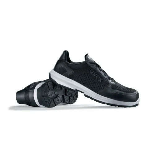 Sporty, multifunksjonell vernesko Uvex® 1 Sport. Overdelen er fremstilt i perforert tekstil som er sterkt, mykt og svært pustende. Dette sikrer et optimalt inneklima i skoene. Tåkappen er helt uten metall og leder derfor hverken kulde eller varme inn i skoene. De dobbelte PU-yttersålene gir en svært god støtdemping med nesten det dobbelte av hva EN-standarden foreskriver for vernesko - både i hælområdet, men like viktig i forfotområdet. Denne såleutformingen gjør også at skoene er superlette, komfortable å ha på og samtidig har et sportslig design. - Yttersålene er SRC-godkjent - noe som er den høyest mulige sklihemmende effekten. Skoene er utstyrt med tåforsterkning som gir lengre holdbarhet og beskytter overdelsmaterialet mot slitasje - Du kan få skoen i størrelser helt fra str. 35 til str. 47. De leveres som standard i bredde 11. - Godkjent i henhold til standarden for Personlig verneutstyr - Vernesko EN ISO 20345:2011 SRC. - Beskyttelsesklasse S1: Sko med lukket tå- og hælkappe og støtdempende hæl - Sklisikker oljeresistent såle med antistatiske egenskaper - ESD-godkjent