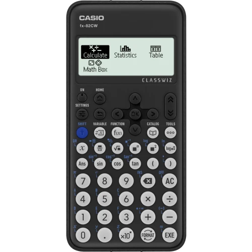 FX-82CW med over 290 funksjoner i ClassWiz-serien. FX-82CW i ClassWiz-serien har en 4 gråskalaskjerm, ikonmeny og innovative funksjoner som Math Box og QR-kodefunksjon. I tillegg er driften kraftig forenklet.