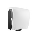 Kantrin Dispenser System Towel har maksimal kapasitet for hygieneområder med mye trafikk. Løsningen gir et kontrollert forbruk som bidrar til reduserte kostnader og vedlikehold. Håndtørkløsning hvor flate ark mates ut ett om gangen for kontrollert forbruk. Produktet er spesielt utviklet for miljøer med krevende hygienebruk og høy besøksfrekvens. Dispenseren er designet med tanke på alle besøkende og med fokus på god funksjon. Den er enkel å bruke og brukervennlig for alle, uavhengig av alder eller evne. Dispenseren er robust og holdbar, noe som gjør den ideell for steder med mye trafikk som offentlige toaletter, sykehus og restauranter. Med sitt moderne design og effektive funksjonalitet bidrar denne dispenseren til et rent og hygienisk miljø. Produktet er enkel å fylle på og vedlikeholde, noe som sikrer at den alltid er klar til bruk. - Minimal trekkmotstand - Kapasitet: 580-772 ark per rull - Hele rullen blir alltid brukt opp - For miljøer med krevende hygienebruk og høy besøksfrekvens - hvor den besøkende kun berører arket som skal brukes - Materiale:ABS, PC og POM - Størrelse (H x B x D): 397 x 322 x 216 mm - Farge: hvit