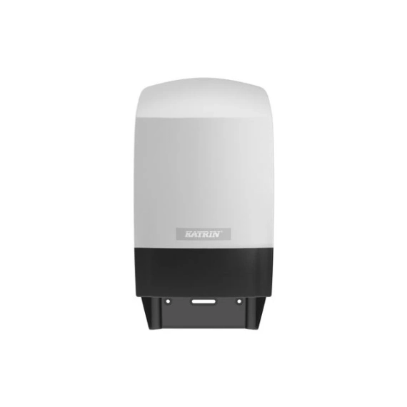 Dispenser med universell utforming. For 2 stk Katrin System Toilet ruller. Enkel og rask påfylling. Enkel og brukervennlige for alle med automatisk fremmating av rull nummer 2. Kan fylles på mens den andre rullen er i bruk slik at det alltid er papir tilgjengelig. Det er enkelt å finne enden på papiret innenfor dispenseråpningen. De gjennomsiktige sidepanelene gjør det enkelt å kontrollere papirnivået. Transparent bakstykke for enklere montering. Låsen kan brukes med eller uten nøkkel. - Har en praktisk kjerneoppsamler - Nedslippssystem for rullene med justerbar rullebrems - Innebygget flikrullfunksjon - Materiale: ABS, PC og POM - plast - Kapasitet: 2 ruller - Sertifiseringer: ISO 9001, ISO 14001 - Farge: hvit - Vekt: 0,896 kg - Mål (H x B x D): 312 x 152 x 172 mm.