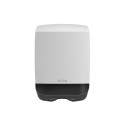 Dispenser for falsede papirhåndklær med universell utforming. Lokket åpnes oppover slik at det blir enklere å fylle på. Støtte som holder papiret på plass og gir en enkel påfylling. De gjennomsiktige sidepanelene gjør det enkelt å kontrollere papirnivået. Transparent bakstykke for enklere montering. Fungerer med alle typer papirhåndklær fra Katrin: C-fold, Non Stop, One Stop og Zig Zag med en maksbredde på 240 mm. - Papiret kan trekkes ut med én hånd - Kompakt for bruk på trange steder - Godkjenninger: ISO 9001, ISO 14001 - Materiale: ABS, PC og POM - Farge: hvit - Vekt: 1,550 kg - Størrelse (H x B x D): 445 x 301 x 142 mm