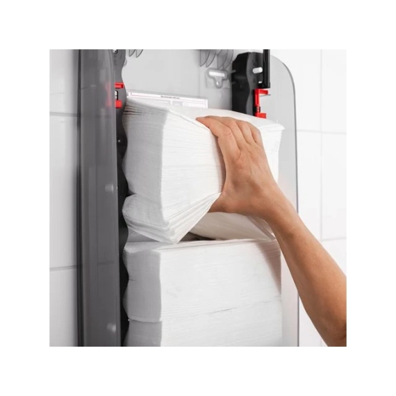 Kompakt håndkledispenser designet for trange rom med få besøkende. En åpen og fleksibel dispenserløsning der alle sammenbrettede håndklær passer, en del av Katrins freedom of choice konsept. En langvarig dispenserløsning, som gir valgfrihet av papirhåndkle ettersom alle brettede håndklær passer. - Kontrollert forbruk, ark for ark - Kan brukes med eller uten nøkkel - Gjennomsiktig bakdeksel for enkel montering - Lett å sjekke papirnivået, takket være gjennomsiktige sidepaneler - Lokket åpnes nedover, for enkel fylling i trange rom - Farge: Hvit
