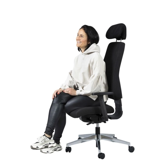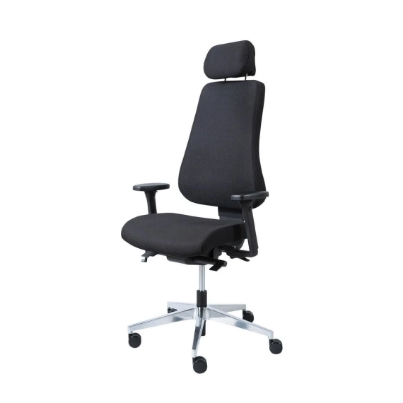 BONO Office Chair gir deg muligheter for god bevegelse og variert arbeidsstilling i løpet av en lang arbeidsdag. Med mange ergonomiske funksjoner og reguleringsmuligheter er stolen svært behagelig å sitte i. Stolens mekanisme er av type synchro tilt som gjør at ryggen og setet tiltes i forskjellig vinkel når tilt-funksjonen benyttes (forhold: 2:1). Tilt-funksjonens motstand reguleres enkelt med et ratt som er lett tilgjengelig ved siden av setet samt at tilt-funksjonen er låsbar i 4 posisjoner. - Regulering av setehøyde - Regulering av sete-vinkel og -dybde - Ekstra bredt sete - Tiltfunksjon for rygg og sete - Regulering av rygghøyde - Avtakbar og regulerbar nakkestøtte - Avtakbare og regulerbare armlener for høyde, vinkel, dybde og bredde - Farge på stol: Svart og krom - Anbefalt maksimal vekt: 120 kg - Enkel montering - Garanti: 5 år - Leveres standard med nakkestøtte og regulerbare armlener - Leveres med slitesterkt sort stoff i sete og rygg
