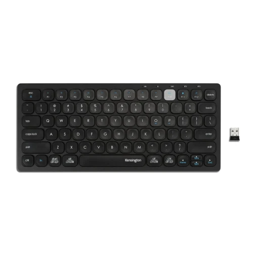 The Multi-Device Dual Wireless Compact Keyboard lets you connect and switch between up to three devices at a time (computer, tablet, or phone), using Bluetooth (3.0 or 5.0) or 2.4GHz wireless with 128-bit AES encryption. Smooth, responsive scissor keys include multimedia hot keys. Windows, macOS, iOS, and Chrome OS compatible. Low battery indicator, so you’re never caught off guard. Includes two AAA batteries. Three-year warranty.