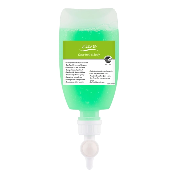 Kiilto Care Dose Hair and Body er mild og oppfriskende dusjgel for hår og kropp. Lufttett og hygienisk doseringskapsel. - Duft av sitrus og blomster - Brukes med Kiilto Dose-dispenser - Sertifisering: Svanemerket - pH 5,5