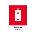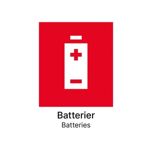 Kildesorteringsetikett Batteri i format 148x210mm med norsk og engelsk tekst. Etikett i PVC materiale med screentrykk og permanent lim. Kan brukes på innendørs og utendørs avfallsbeholdere.