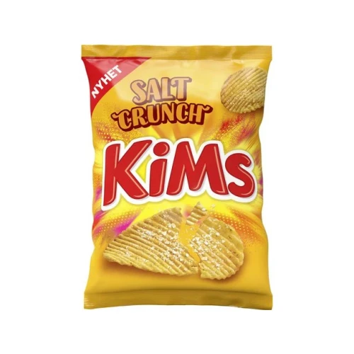 KiMs Salt Crunch er et ekstra sprøtt og smaksrikt potetgull, saltet og riflet. Porsjonspose med salt potetchips. Holder seg sprøtt lenger, velegnet snacks for serveringssteder, møterom og pauserom. Produsert på chipsfabrikken på Skreia, av nøye utvalgte poteter. Den tomme posen kan resirkuleres, kildesorteres som plastavfall. - Salt og sprøtt potetgull - Porsjonspose 30 gram - Allergener: Ingen