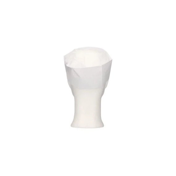 Kokkelue i non-woven viskose, med lav krone. - Størrelse: one size. - Farge: hvit. - Bruksomtåde: kjøkken, restauranter, catering, matindustri.