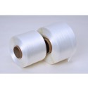 WG-bånd med bredde 13mm, beregnet for bruk i avfallskomprimatorer, til strapping av paller og til bunting av andre type produkter. WG bånd er polyestertråder limt sammen. Båndet er meget sterkt og samtidig mykt og skånsomt mot godset. Båndet er utformet for rask og enkel klargjøring av komprimert papp og plast for transport og gjenvinning. Båndet knytes sammen i komprimatoren, eller brukes med spenner og manuell båndstrekker. - Båndets bredde: 13mm - Lengde: 500m - Bruddstyrke: 375 kg - Farge: Hvit - Hylsediameter (indre): 60mm