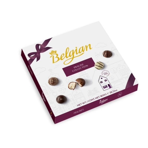 Opplev luksusen av belgisk konfekt med en blanding av utsøkte smaker i denne velassorterte konfektesken fra The Belgian. Dykk ned i en verden av ren sjokoladelykke i denne store konfektesken med belgiske praliner. Med en stolt tradisjon siden 1956, har The Belgian etablert seg som en mester i utsøkte sjokolader. Denne esken inneholder en herlig blanding av de beste pralinene, inkludert kremete Chocolate Mousse, fortryllende Crème Brûlée og herlige Tiramisu praliner. Nyt denne unike dessertrekken. En rikholdig eske belgisk konfekt, en flott gave til familie, ansatte og andre. - Belgisk sjokolade i en fin gaveeske - Assorterte praliner med forskjellige fyllinger - Nettovekt: 800 gram - Allergener: Melk og hasselnøtter