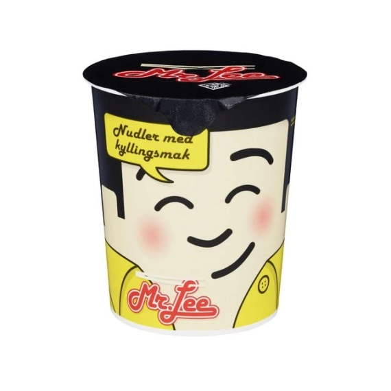 Mr. Lee koppnudler med kyllingsmak passer godt når man vil ha en enkel og smakfull snack. Tilsett kokende vann og spis rett fra koppen! Med Mr. Lee nudler får du et raskt pausemåltid, passer perfekt når man er litt sulten - på jobben eller på farten. Enkel tilberedning: Åpne halvparten av lokket og fyll opp med kokende vann til merket linje Legg på lokket igjen og vent 3 minutter, rør rundt velbekomme! - Mellommåltidet for en varmende pause - Allergener: Gluten (hvete) og soya - Sammensetningen kan endres. Les alltid ingredienslisten på emballasjen - Nettovekt: 65g - Vegetarisk og vegansk