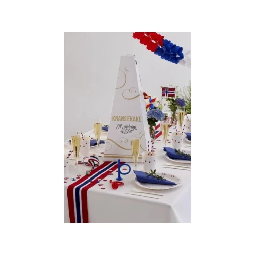 Pyramideformet eske til kransekake. - Mål ferdig montert: (LxBxH): 25x25x55cm. - Materiale: kartong. - Leveres flatpakket i bunter a 25stk.