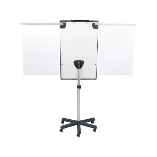 Mobil flippover med magnetisk overflate og låsbare hjul Dette mobile flippoverstativet kombinerer fleksibilitet og stabilitet for en optimal presentasjonsopplevelse. Med justerbar høyde og en stjernebase utstyrt med låsbare hjul, kan du enkelt flytte og sikre stativet etter behov. Den magnetiske, tørrslettbare overflaten kan også brukes som en whiteboard, og de utfellbare sidene gir ekstra presentasjonsplass. - Magnetisk, tørrslettbar overflate og plass til flippoverblokker - Justerbar høyde opptil 205 cm for komfortabel skriving - Utfellbare sidearmer for ekstra plass til notater - Mobil stjernebase med 5 låsbare hjul for stabilitet og enkel manøvrering - Inkludert startsett: flippoverblokk og markører