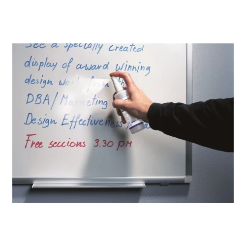 Legamaster® tavlerenser leveres i en praktisk sprayflaske for enkel påføring. Dette rengjøringsmiddelet er egnet for bruk på whiteboardtavler, glasstavler og flippovertavler. Det bidrar til å fjerne tusjblekk, støv, skitt og fingeravtrykk uten å etterlate stygge merker.