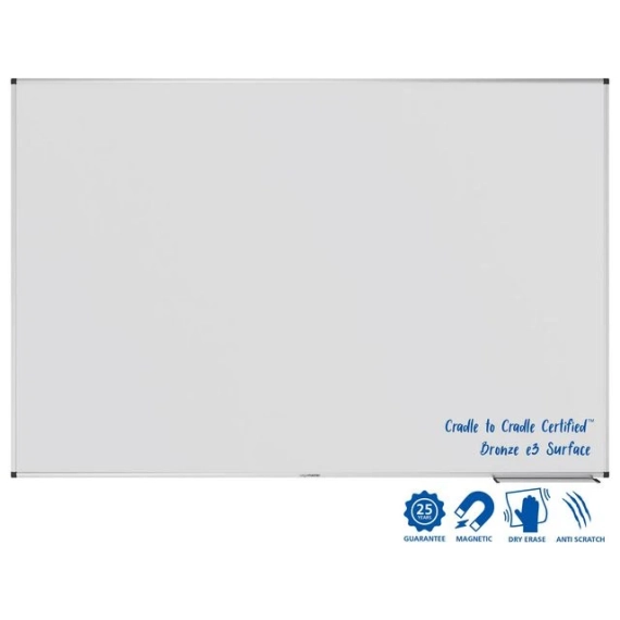 Magnetisk emaljert ståloverflate med e3 Ceramic Steel. Egnet til å skrive på med whiteboard-tusjer. Utmerket ytelse for skrive- og tørrsletting. Magnetisk overflate: Lett å feste notater, skisser og bilder. Konstruert for å være bakterieresistent: den glatte, ikke-porøse overflaten forhindrer vekst og reproduksjon av bakterier og bakterier. Enkel veggmontering: fleksibel montering og skjult skruefeste Ripebestandig tavle av høy kvalitet for langtidsbruk. Aluminiumsramme med lysegrå plasthjørnekapper Kan monteres horisontalt eller vertikalt Markeringsbrett (30 cm), monteringssett og monteringsanvisning følger med.
