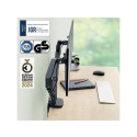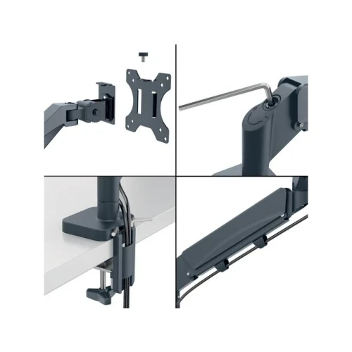 Leitz plassbesparende skjermarm har en positiv innvirkning på kroppsholdningen, fremmer riktig øyejustering og støtter nakke- og skulderkomfort når høyden på skjermene er justert riktig, og som anbefalt, til den ideelle ergonomiske posisjonen. Skjermene forblir stabile i alle høyder og vinkler og kan enkelt byttes mellom liggende og portrettmodus. Dens design er ideell der det er begrenset plass, og det vil frigjøre verdifull plass på skrivebordet. - Ergonomisk utformet for å fremme velvære og øke produktiviteten. Leitz plassbesparende skjermarm har en positiv innvirkning på kroppsholdningen, fremmer riktig øyejustering og støtter nakke- og skulderkomfort når høyden på skjermene er justert riktig, og som anbefalt, til den ideelle ergonomiske posisjonen - Plassbesparende design gjør at den kan monteres også der det er lite plass, uten at det går på bekostning av dybdeskarphet og optimal visuell ergonomi - Skjermene kan justeres helt uavhengig av hverandre, og de kortere støttearmene lar skjermer i forskjellige størrelser sømløst justeres - Fjærassistert dobbel skjermarm for enkelt å justere skjermenes høyde (185 mm-435 mm) - Har 180° svingning og skjermrotasjon, +90°/- 90° tilt og tillater justering opp, ned, forover og bakover - Støtter 13'-34' flat eller buede skjermer som veier opp til 9 kg per. stk. - Enkel å installere med den medfølgende hurtigutløsende avtakbare Vesa®-platen (75 og 100 mm) og silikongummi c-klemme som reduserer vibrasjoner og beskytter skrivebordoverflaten eller ved hjelp av hull (bordtykkelsesområde: 10-80 mm). Verktøy for montering og justeringer inkludert - Kabeladministrasjonssystem holder skjermkabler organisert for et ryddigere arbeidsområde IGR og TÜV sertifisert.
