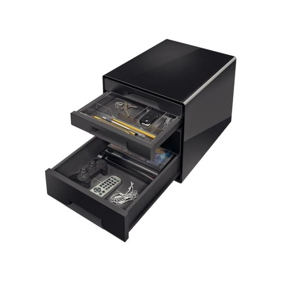 Leitz Cube passer perfekt sammen med andre Leitz Dual-produkter og vil passe både til kontoret og hjemmekontoret. Skuffene glir lett, og har stoppfunksjon som hindrer de å falle ut.
