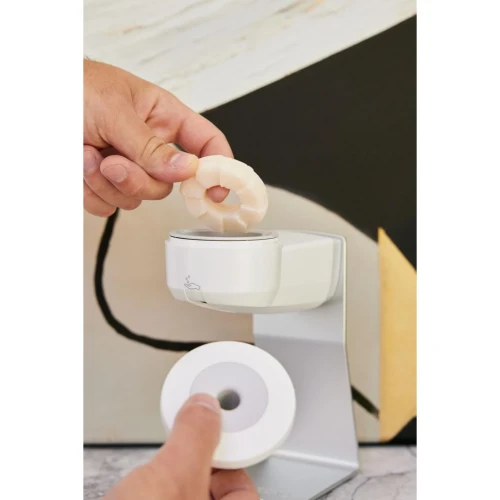LESSEAU Solid Hand Soap er et plantebasert såpestykke som doserer et fint håndvaskpulver. Den er laget med 99% naturlige ingredienser, som kakao, kokosnøttolje og oliven, helt uten palmeolje. Såpen skaper et fyldig skum som gjør hendene myke og glatte, og gir en behagelig brukeropplevelse. Med sin altomfattende, rike formulering, imponerer kundene dine med en minneverdig opplevelse de vil ønske å dele, og skaper en differensiert 'wow-faktor'. Brukes i kombinasjon med LESSEAU dispensere. - En pleiende og sofistikert håndsåpe som gir en behagelig opplevelse både under og etter bruk - Unngå å gå tom for såpe med funksjonen for dobbel påfylling, som sikrer at det alltid er såpe tilgjengelig - Dermatologisk testet - Null håndvaskavfall: 100% av den faste håndsåpen som etterfylles i LESSEAU-dispenseren blir brukt - Brukes sammen med en stilren, hvit eller svart berøringsfri dispenser - 300 doseringer per såpe/2 såper per refill - Plantebasert, plastfri emballasje - Med parfyme (blomsterduft)