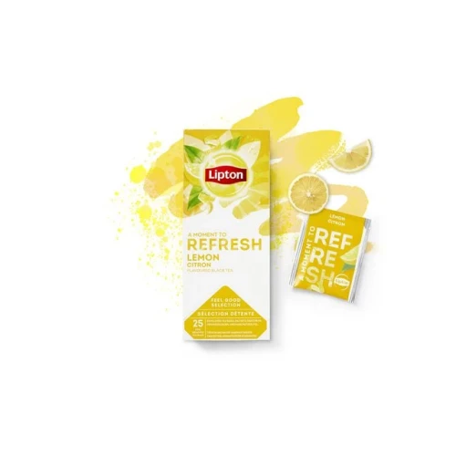 Start dagen med denne deilige blandingen av nypressede svarte teblader med sitron. Våkn opp til den forfriskende smaken av Lipton Lemon Black-te om morgenen. Gled sansene dine med sitrusduft av sitron, sammen med en nøye utvalgt blanding av svart te, som gir en forfriskende smak i hver eneste slurk. - Enkel å tilberede: Legg én pose i kokt vann i 2?3 minutter, og ta den ut - Koffeinholdig drikke - 100 % bærekraftige teblader - Sertifisering: Rainforest Alliance - Smak: Sitron - Én boks inneholder 25 innpakkede teposer