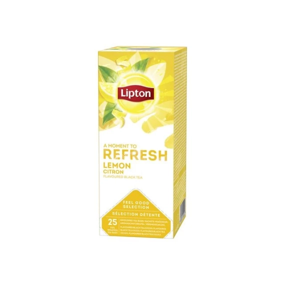 Start dagen med denne deilige blandingen av nypressede svarte teblader med sitron. Våkn opp til den forfriskende smaken av Lipton Lemon Black-te om morgenen. Gled sansene dine med sitrusduft av sitron, sammen med en nøye utvalgt blanding av svart te, som gir en forfriskende smak i hver eneste slurk. - Enkel å tilberede: Legg én pose i kokt vann i 2?3 minutter, og ta den ut - Koffeinholdig drikke - 100 % bærekraftige teblader - Sertifisering: Rainforest Alliance - Smak: Sitron - Én boks inneholder 25 innpakkede teposer