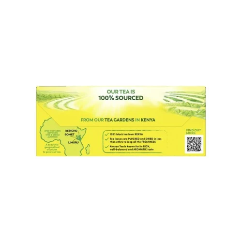 Teposer med klassisk sort te fra Kenya. Rund og fyldig smak. Tilberedning: 1 tepose brygges i 200ml nykokt vann i 2-3 minutter.