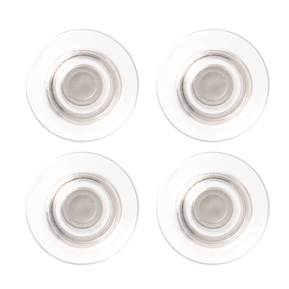 Stylish transparent magnets that look professional on any board, extra strong optimised for use on glass whiteboards Strong magnetic force designed for use on glass dry wipe whiteboards. - Holds up to 6 sheets of paper on glass dry wipe whiteboards. - Display office memos and messages neatly, securely and stylishly. - 32mm diameter. - Pack of 4