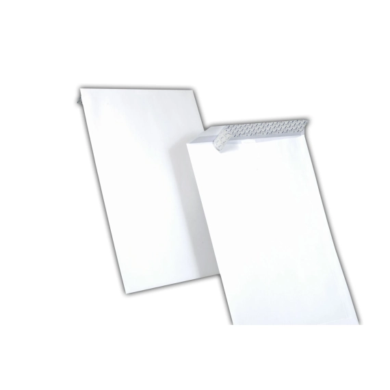 Denne konvolutten har selvklebende forsegling som forhindrer at papirene faller ut.