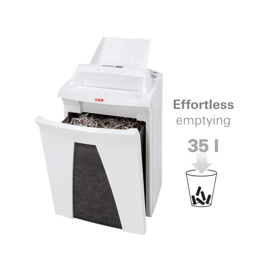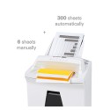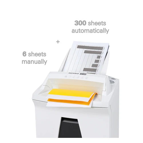 Enkel og komfortabel makulering på arbeidsplassen. Makuleringsmaskin med automatisk papirinntrekk og avlukkbart magasin beskytter mot uberettiget tilgang til den matede papirbunken og shredder lett og tidsbesparene buker på opp til 300 ark og enkle ark.• Høykvalitets materialer og kvalitet „Made in Germany“ for sikkerhet og lang levetid. Med 3 års garanti.• Stålskjæreverk med livslang garanti tåler binders og stifter og garanterer for lang levetid.• Makulering av papirbunker på en tidsbesparende, pålitelig og komfortabel måte.• Den kraftige motoren skaper høy kuttytelse ved pålitelig vedvarende drift.• Makuleringsmaskinen med autofeed har en spesielt utviklet inntrekks og transportvalse med nanogrepteknologi og trekker inn ett ark om gangen fra papirbunken.• Nyttig dobbelfunksjon: Under autofeed bearbeiding av bunker kan man samtidig mate papir manuelt.• Makuleringsmaskinen har en utforming med lang levetid, lavt energiforbruk og bruk av miljøvennlige