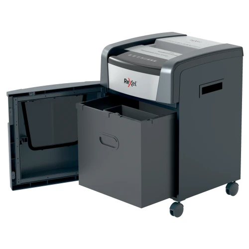Rexel Momentum Extra makuleringsmaskiner er ideelle for makulering av konfidensielle dokumenter på kontoret. XP418+ makuleringsmaskinen makulerer opptil 18 A4 ark (80 g) på en gang gjennom den manuelle matespalten til P-4 (4x35 mm) krysskutt. Anti Jam-teknologi måler antall ark som mates for å forhindre papirstopp og feil mating; indikert med en rød LED på kontrollpanelet. Denne makuleringsmaskinen vil ikke fungere før antallet ark er redusert under eller til maksimal arkkapasitet. Denne krysskutt makuleringsmaskinen er designet for moderat til tung bruk med sin høye arkkapasitet, store beholder på 30 liter og lang driftstid på opptil 4 timer. Det er ikke nødvendig å fjerne stifter og binders først. Denne Rexel makuleringsmaskinen makulerer også trygt CDer, DVDer og kredittkort gjennom en egen matespalte. - Makulerer opptil 18 x A4-ark (80 g) samtidig - P-4 krysskutt (4x35mm) - Sensorteknologi måler antall ark som mates for å forhindre papirstopp og feil mating; indikert med et rødt