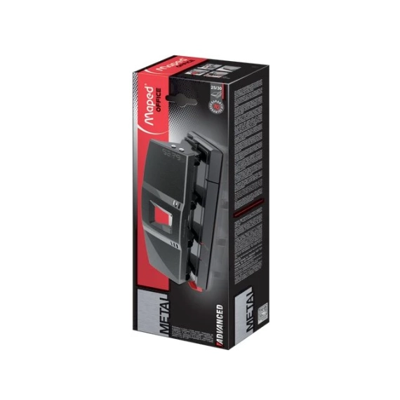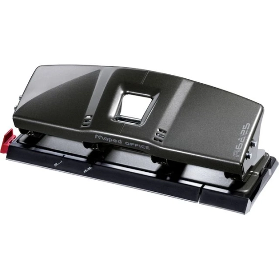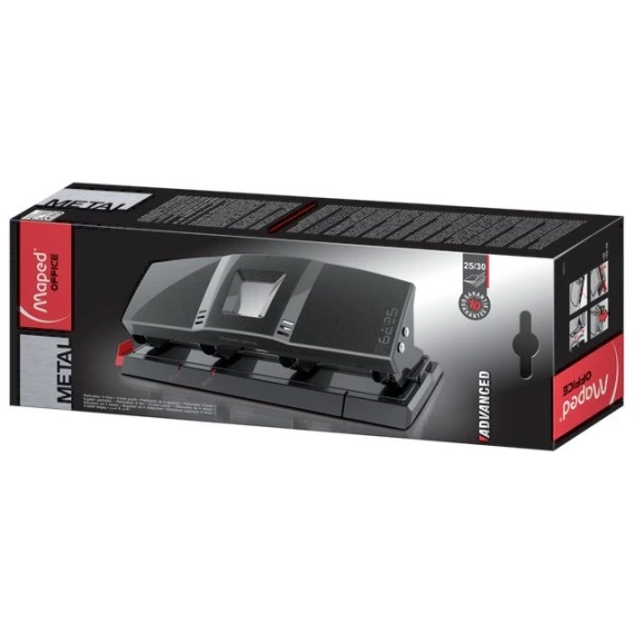 Slitesterk hullemaskin for presisjonsarbeid Denne helmetall hullemaskinen fra Maped er ideell for profesjonell bruk. Designet for å levere kraft og stil på kontoret, gjør den hverdagslige oppgaver enklere med optimalisert arkinnstilling og antiskli-pads. Raskt og presist perforerer den fire hull, perfekt justert til standard 4-hulls mapper. - Perforerer opptil 30 ark (80g/m²) eller 25 ark (70g/m²) - Antiskli-pads og enkel tømming av konfettireserven - Kompatibel med 4-hulls mapper - 10 års garanti