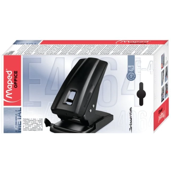 Sort hullemaskin med to hull for opptil 60 ark (70g). Veiledningskinne for ulike papirstørrelser. Oppsamler-deksel som er lett å åpne - Farge: sort - Arkkapasitet: 60