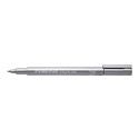 STAEDTLER® 8323 Metallic marker silver. For opaque writing and decorating on light and dark paper as well as on card. Ideal for scrapbooking and greeting cards. No pumping or shaking required. Can be easily wiped off smooth surfaces like glass and mirrors using a damp cloth. Line width approx. 1-2 mm. Metallic marker pen with fibre-tip