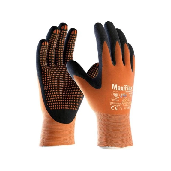 Maxiflex Endurance 42-848 den originale MaxiFlex Ultimate Nylon/Lycra® belagt med skumnitril. Øko-Tex®-sertifisert og dermatologisk godkjent av Skin Health Alliance - Silikonfri - Standard:EN 420:samsvarer med basiskrav. Hanskene må ikke utgjøre risiko eller fare, og produsenten må opplyse om det inngår kjente emner som kan forårsake allergier. PH-verdien i hanskematerialet må være større enn 3,5 og mindre enn 9,5 (nøytralt). Mengden av krom (VI) i materialet må ikke overstige 3 mg/kg - EN 388, 2003 (4, 1, 3, 1):beskyttelse mot mekaniske farer. I denne standarden testes hanskene for slitestyrke, kuttmotstand, rivefasthet og punkteringsmotstand. - Bruk: Generell håndtering, Mekanisk håndtering, Vaktmester - Materiale: Nylon, Spandex - Belegningsmateriale: Nitril, Nitrilskum - Beleggtype: Håndflate- og fingerbelegg - Tykkelse: 1,10 mm - Lengde: 21 cm - Klassifikasjon: Kategori II - Farge: Oransje, Sort