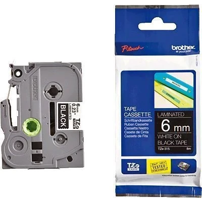 Brother P-Touch Tape Sort på Hvit 6mm Ekstra Klebende (8m)