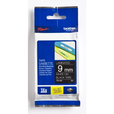 Brother P-Touch Tape Sort på Hvit 9mm Ulaminert (8m)