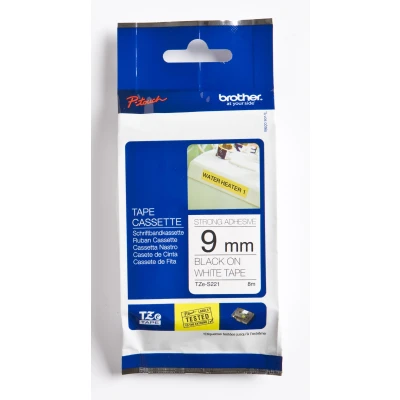 Brother P-Touch Tape Sort på Hvit 9mm Ekstra Klebende (8m)