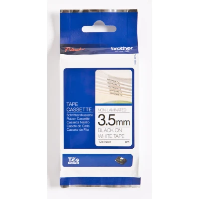 Brother P-Touch Label Tape Sort på Hvit 3.5mm (8m)