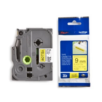 Brother P-Touch Tape Sort på Gul 9mm Ekstra Klebende (8m)